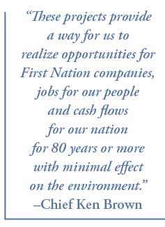 “These projects are in the heart of our traditional territory, the lands that sustained our ancestors and that have to sustain our children,” Brown said. “These projects provide a way for us to realize opportunities for first nation companies, jobs for our people and cash flows for our nation for 80 years or more with minimal effect on the environment.”