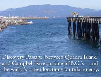 But Discovery Passage, the strait between Campbell River and Quadra Island, hosts some of the world’s best tidal resources. The Haida Gwaii region has also attracted tidal feasibility studies.