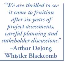 “Whistler Blackcomb is a strategic partner in the project, their efforts to facilitate the water rights licensing and coordinate the various stakeholders allowed the project to move ahead,” says Jamie Horner, Project Manager for the Fitzsimmons Creek Hydro Project. Whistler Blackcomb is directly involved in the construction and environmental stewardship of the project.